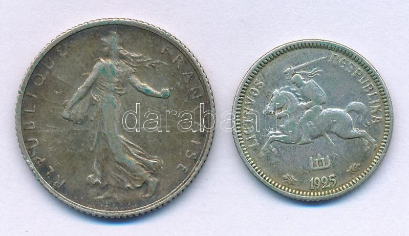 Leírás: Franciaország 1917. 1Fr Ag + Litvánia 1925. 1L Ag T:VF, patina