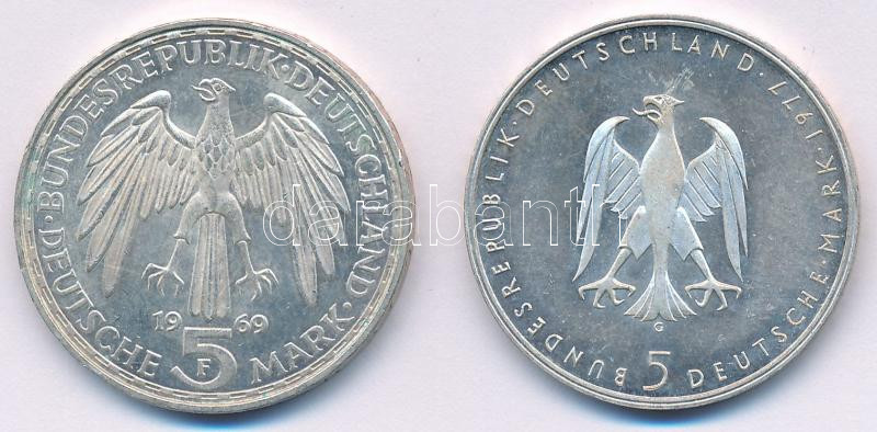 Német Szövetségi Köztársaság 1969F 5M Ag "Gerhard Mercator" + 1977G 5M Ag "Heinrich von Kleist" T:AU (PP), AU patina