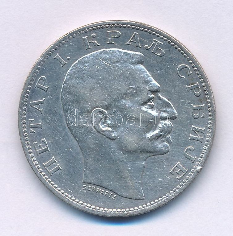Serbia 1912. 2 Dinara A... https://www.darabanth.com/hu/500-Gyorsarveres/500.0/Numizmatika/Kulfoldi-fem-es-ezustpenzek~1500062/Szerbia-1912-2D-Ag-I-Peter-TVF3Cbr-3E-Serbia-1912-2-Dinara-Ag-Petar-I-CVF3Cbr-3E-Krause-KM~II3409404