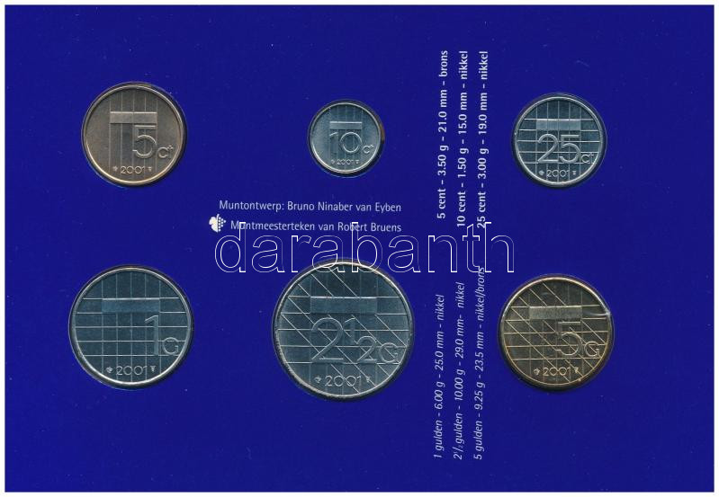 Hollandia 2001. 5c-5G (6xklf) forgalmi sor karton dísztokban, fólia bo... https://www.darabanth.com/hu/500-Gyorsarveres/500.0/Numizmatika/Kulfoldi-forgalmi-sorok~1500063/Hollandia-2001-5c-5G-6xklf-forgalmi-sor-karton-disztokban-folia-boritekban-TUNC-Netherlands~II3402696
