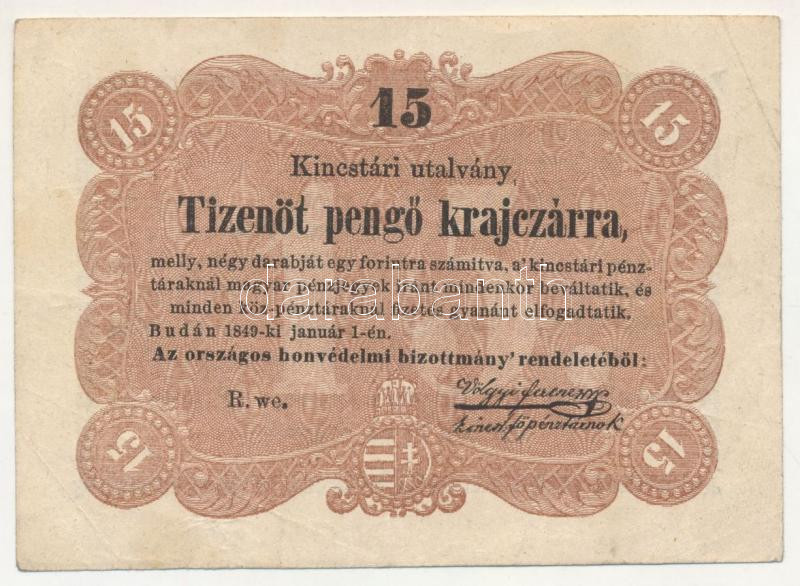 1849. 15kr "Kossuth bankó" T:F erős papír