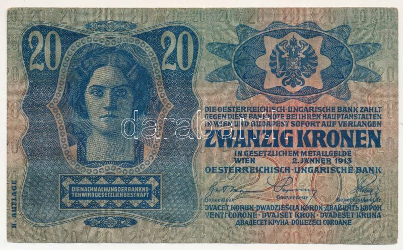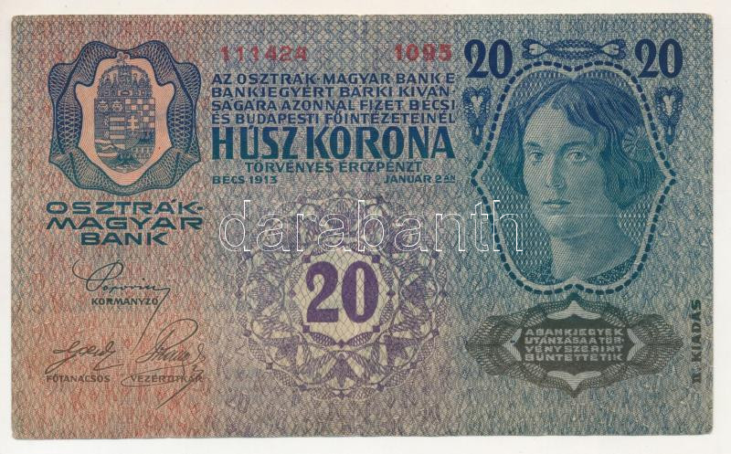 1913. 20K "II. kiadás" felülbélyegzés nélkül T:F Adamo K17 https://www.darabanth.com/hu/500-Gyorsarveres/500.0/Numizmatika/Magyar-bankjegyek~1500054/1913-20K-II-kiadas-felulbelyegzes-nelkul-TF-Adamo-K17~II3404257