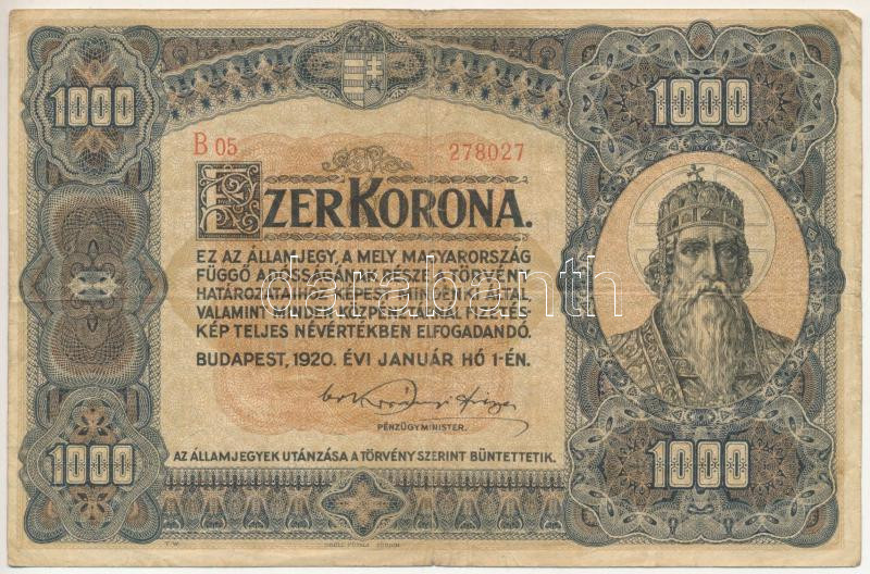 1920. 1000K "Orell Füssli Zürich" nyomdahely-jelöléssel, &qu... https://www.darabanth.com/hu/500-Gyorsarveres/500.0/Numizmatika/Magyar-bankjegyek~1500054/1920-1000K-Orell-Fussli-Zurich-nyomdahely-jelolessel-B-05-278027-sorszammal-TF3Cbr-3E-Hu~II3402568