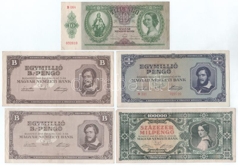 Leírás: 1932-1946. 10P - 1.000.000BP (6xklf, 9db) T:F, javarészben szép papír