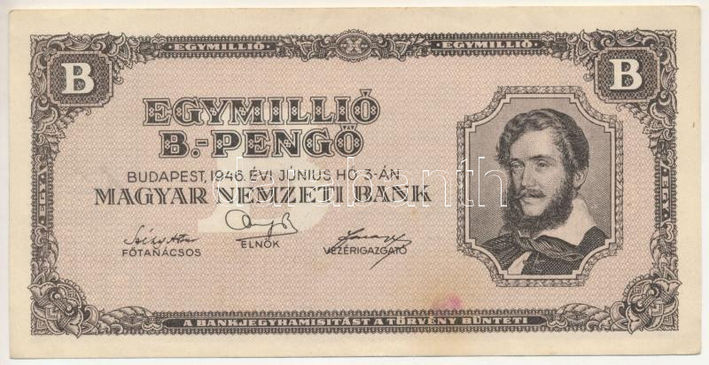 Adamo P37 https://www.darabanth.com/hu/500-Gyorsarveres/500.0/Numizmatika/Magyar-bankjegyek~1500054/1946-1000000BP-TF-folt-egyebkent-eros-papir3Cbr-3E-Adamo-P37~II3402586