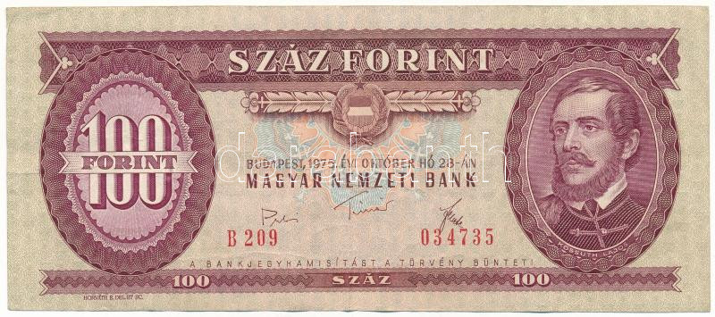 Leírás: 1975. 100Ft "B 209 034735" T:F erős papír