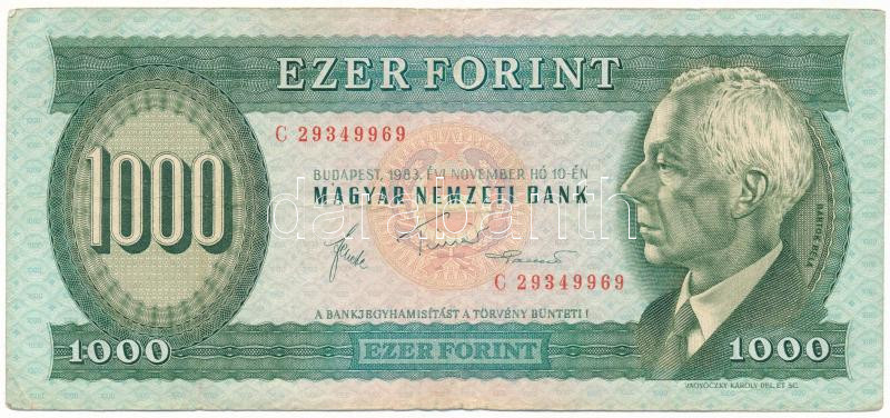 1983. november 10. 1000Ft "C 29349969" T:F Adamo F45 https://www.darabanth.com/hu/500-Gyorsarveres/500.0/Numizmatika/Magyar-bankjegyek~1500054/1983-november-10-1000Ft-C-29349969-TF-Adamo-F45~II3410016