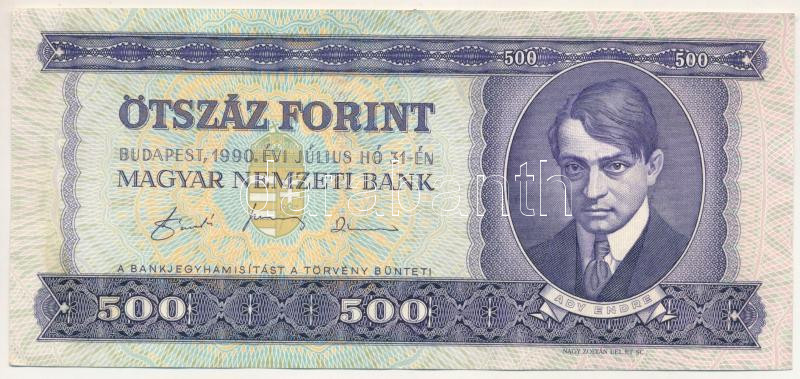 Leírás: 1990. 500Ft "E 093 011662" nyomdai festékfoltok T:F szép papír