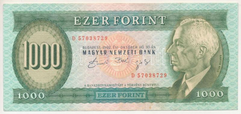 Leírás: 1992. 1000Ft "D 57038729" T:F kis folt, egyébként szép papír