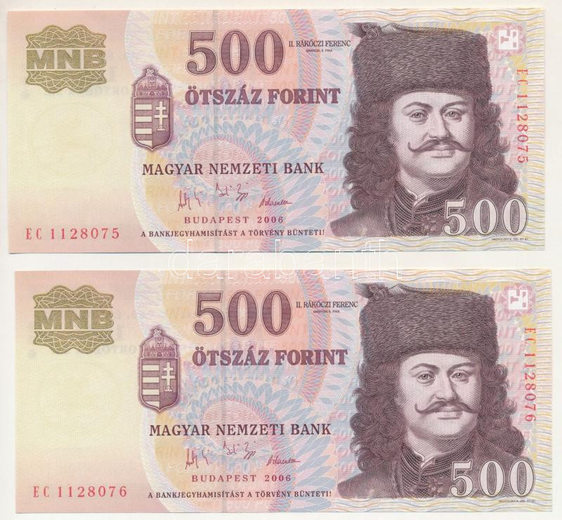 2006. 500Ft "A forradalom 50. évfordulója 1956. október 23."... https://www.darabanth.com/hu/500-Gyorsarveres/500.0/Numizmatika/Magyar-bankjegyek~1500054/2006-500Ft-A-forradalom-50-evforduloja-1956-oktober-23-2x-sorszamkovetok-EC-1128075-~II3402535