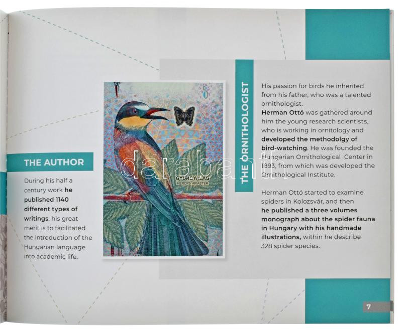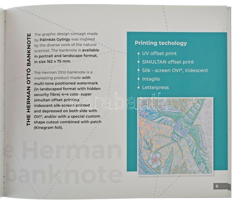 2019. "Herman Ottó" (2xklf) mintabankjegy pár tervezet. Eredeti, angol nyelvű tájékoztató füzetben. A bankjegyeket tervezte: Pálinkás György T:UNC /