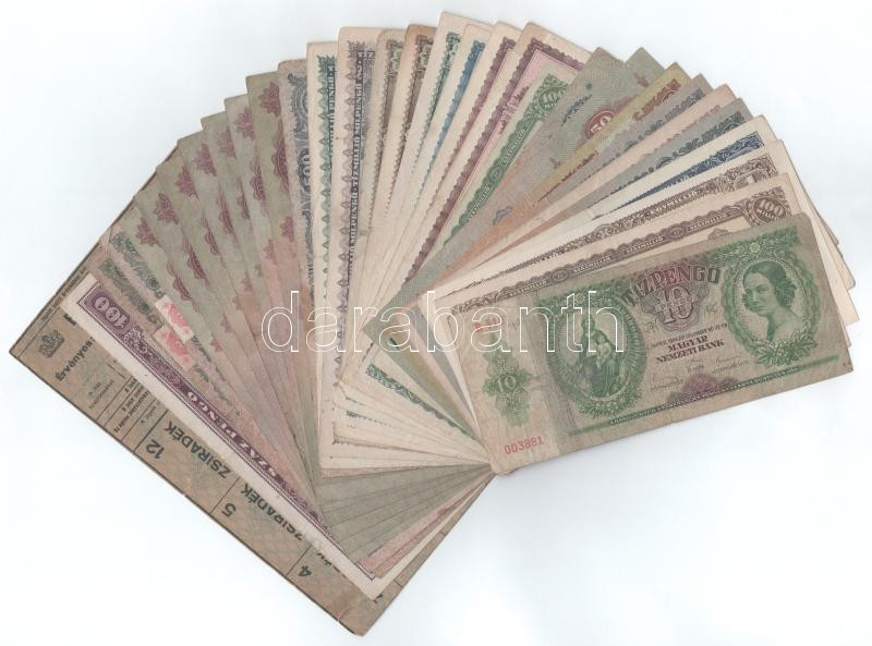 Vegyes 30db-os pengő bankjegy tétel + ~1944-1945. "Budapesti zsidarékjegy" kitöltetlen élelmiszerjegy hiánytalan T:F,VG közte néhány jobb állapotú és szép papír