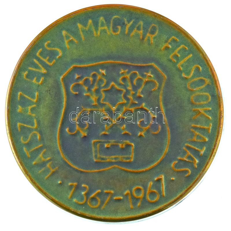 1967. "Hatszáz éves a magyar felsőoktatás 1367-1967" egyolda... https://www.darabanth.com/hu/500-Gyorsarveres/500.0/Numizmatika/Magyar-emlekveretek-plakettek~1500057/1967-3Cem3EHatszaz-eves-a-magyar-felsooktatas-1367-19673Cem3E-egyoldalas-mazas-keramia-plaket~II3410904