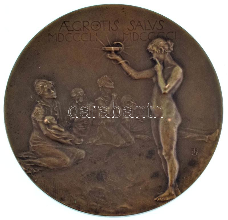 Beck Ötvös Fülöp (1873-1945) 1901. "Korányi Frigyes doktorrá avatásának 50. évfordulója" kétoldalas bronz emlékérem. "FRIDERICO KORÁNYI DE TOLCSVA PER LVSTRA X MED DOCTORI CRATI DISCIPVLI D D D / AEGROTIS SALVS MDCCCLI MDCCCCI" (70mm) T:AU,XF HP 791.