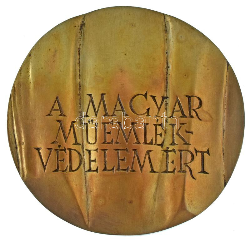 Leírás: Kiss Nagy András (1930-1997) DN "A Magyar Műemlék Védelemért " kétoldalas öntött bronz emlékplakett eredeti névre szóló dísztokban (107mm) T:AU