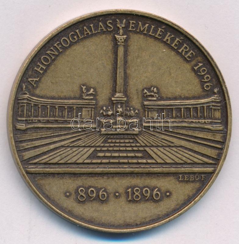 Lebó Ferenc (1960-) 1996. "A honfoglalás emlékére / Árpád nagyfej... https://www.darabanth.com/hu/500-Gyorsarveres/500.0/Numizmatika/Magyar-emlekveretek-plakettek~1500057/Lebo-Ferenc-1960-1996-3Cem3EA-honfoglalas-emlekere-Arpad-nagyfejedelem3Cem3E-ketoldalas-~II3409904