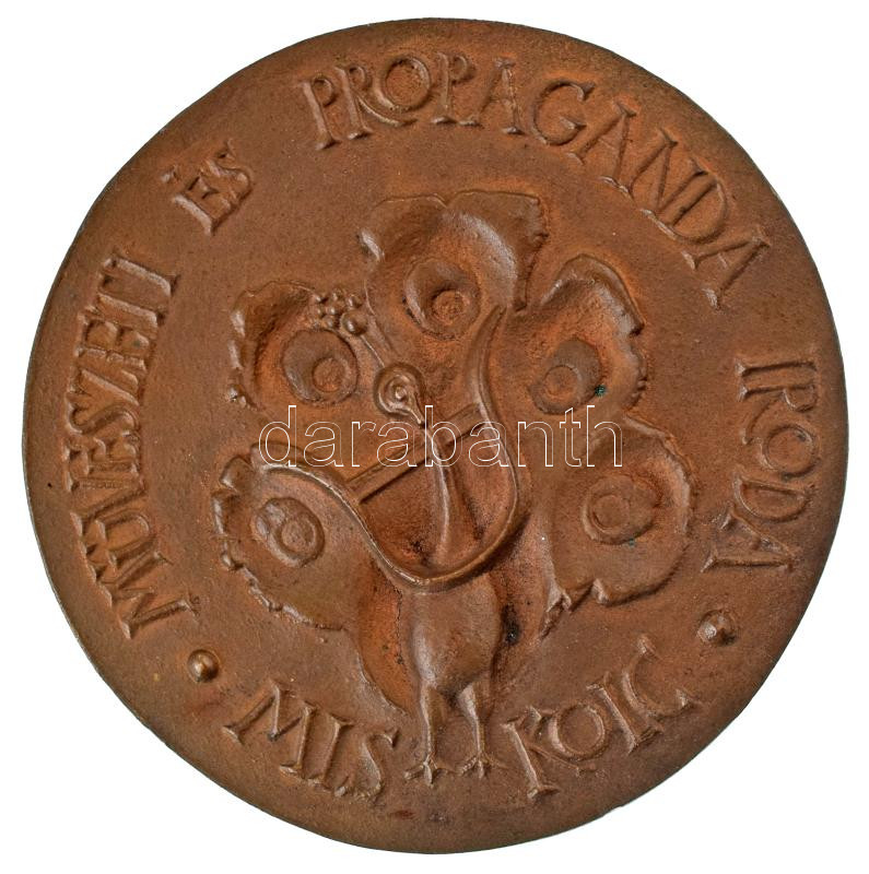 Leírás: Ligeti Erika (1934-2004) DN "Művészeti és Propaganda Iroda Miskolc " kétoldalas, öntött bronz plakett (~100mm) T:AU