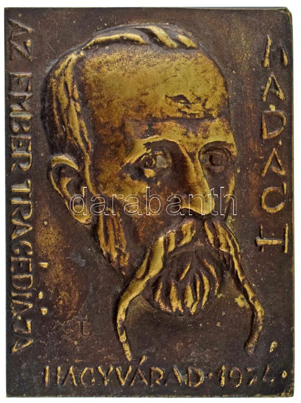 Leírás: Tőrös Gábor (1934-2021) 1974. Nagyvárad "Madách - Az ember tragédiája " egyoldalas, öntött bronz emlékplakett (115x150mm) T:XF, patina, hátoldalán akasztáshoz fúrt lyukkal