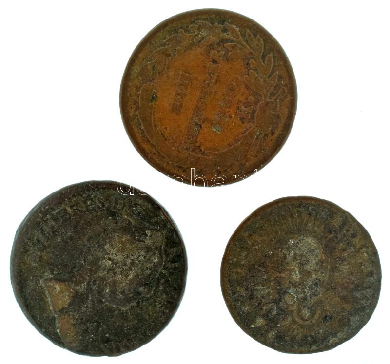 Leírás: 1761K 1kr Cu "Mária Terézia" + 1763. Rézdénár "Zárt korona / Mária Terézia" + 1780K 1kr Cu "Mária Terézia" T:F