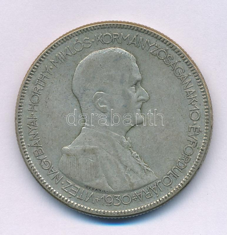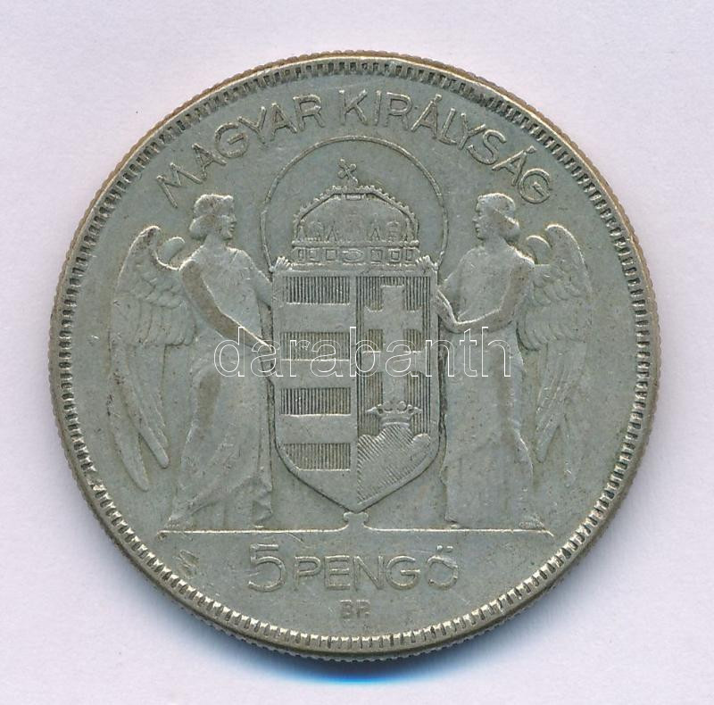 Leírás: 1930. 5P Ag "Horthy jobbra " T:F, patina