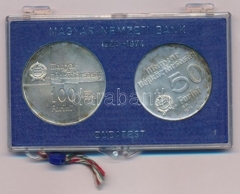 Leírás: 1974. 50Ft Ag + 100Ft Ag "Magyar Nemzeti Bank " pár eredeti, plombált, "Magyar Nemzeti Bank " plasztiktokban T:BU patina