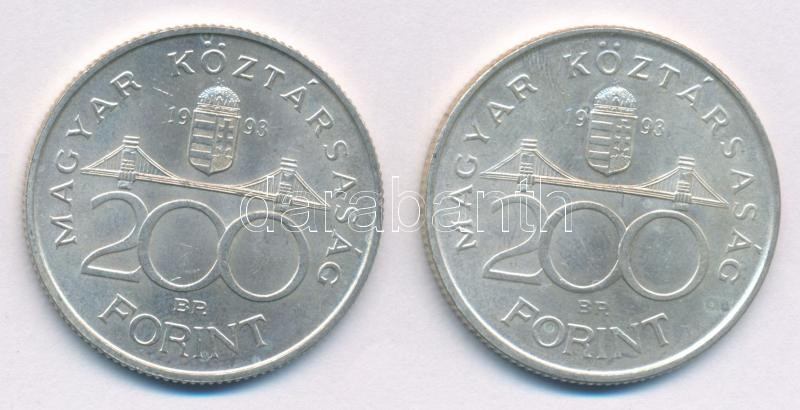 Leírás: 1993. 200Ft Ag "MNB " (2x) T:AU