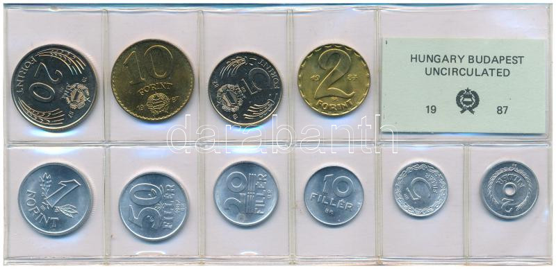 Leírás: 1987. 2f-20Ft (10xklf) érmés forgalmi sor fóliatokban T:UNC