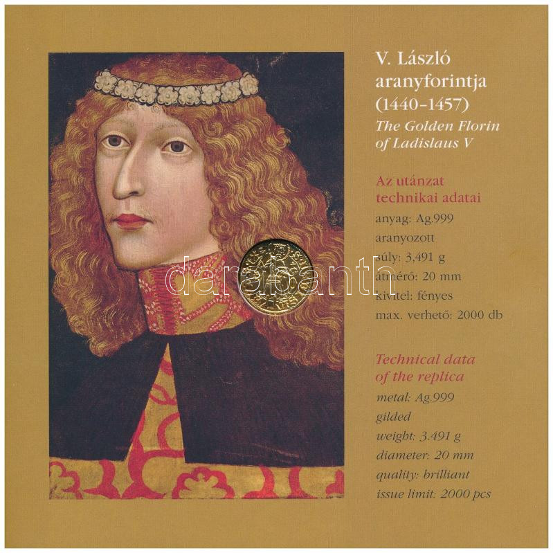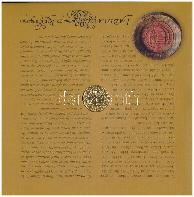 Leírás: 2024. 5Ft-200Ft (6xklf) forgalmi sor + 2024. "V. László aranyforintja" aranyozott Ag, jelzett utánveret (3,491g/0.999/20mm) dísztokos szettben T:PP