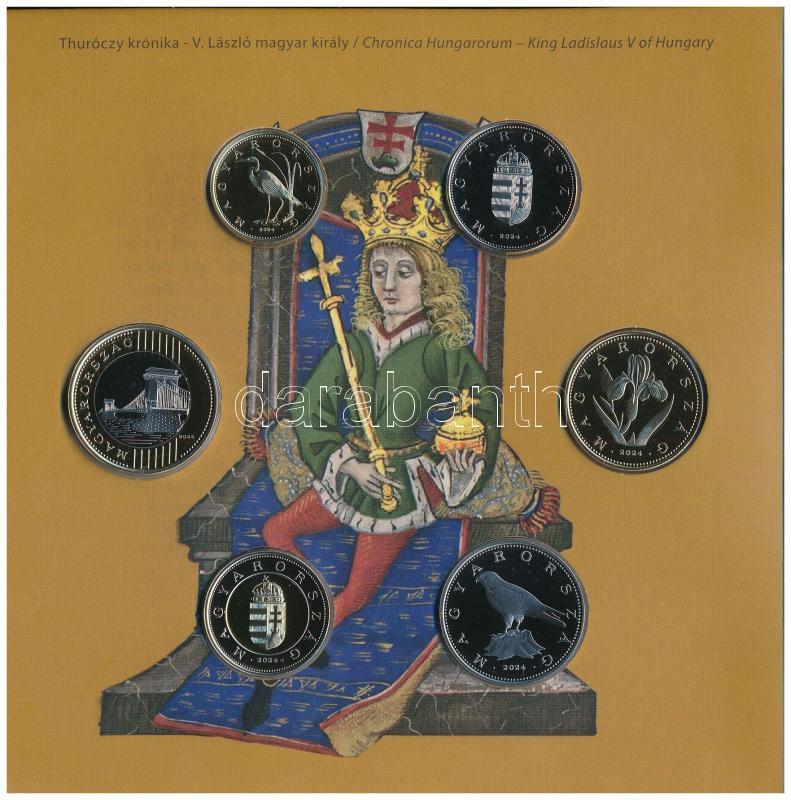 2024. 5Ft-200Ft (6xklf) forgalmi sor + 2024. "V. László aranyfori... https://www.darabanth.com/hu/500-Gyorsarveres/500.0/Numizmatika/Magyar-forgalmi-sorok~1500056/2024-5Ft-200Ft-6xklf-forgalmi-sor-plus-2024-V-Laszlo-aranyforintja-aranyozott-Ag-jelzett-uta~II3409242