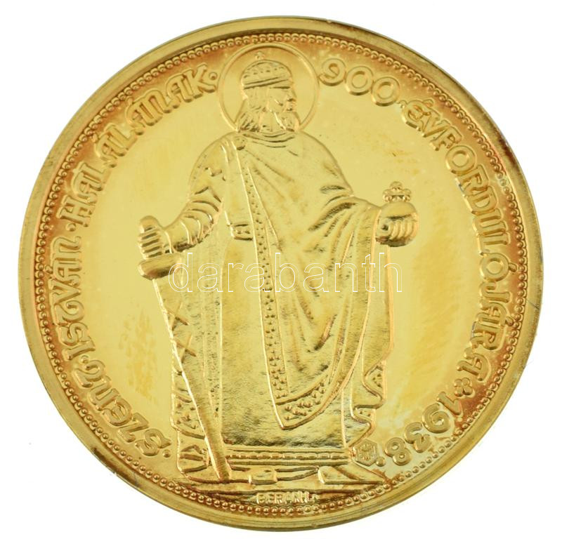 1938. 100P "Szent István" aranyozott Ag utánveret kapszulába... https://www.darabanth.com/hu/500-Gyorsarveres/500.0/Numizmatika/Modern-utanveretek-fantaziaveretek~1500059/1938-100P-Szent-Istvan-aranyozott-Ag-utanveret-kapszulaban-5-50g099925mm-TPP~II3404471