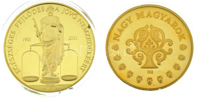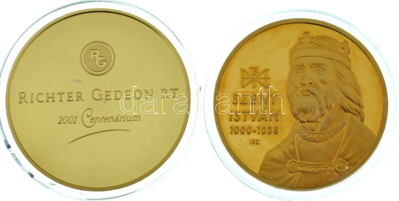 Leírás: Kósa István (1953-) 2001. "Richter Gedeon RT. 2001 Centenárium / Egészséges fejlődés a jövő nemzedékéért - Aszklépiosz " kétoldalas aranyozott fém emlékérem kapszulában (42mm) + ifj. Szlávics László (1959-) 2011. "Nagy Magyarok / Szent István " aranyozott Cu emlékérem (40mm) T:AU (eredetileg PP)