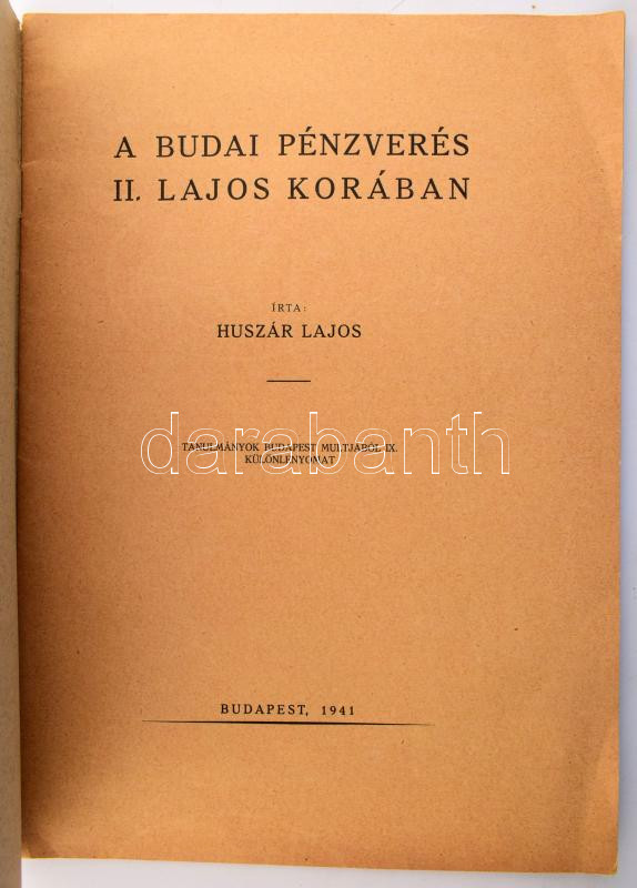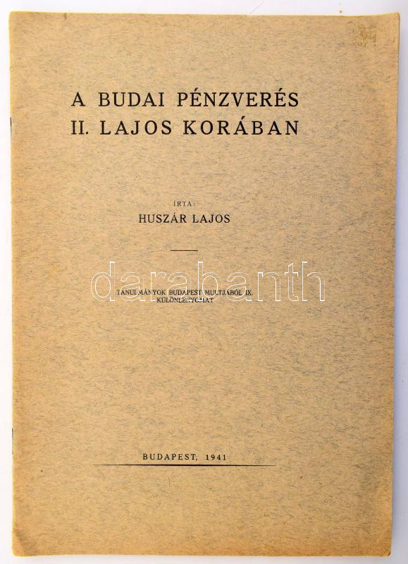 Huszár Lajos: A budai pénzverés II. Lajos korában. Bp., 1941, papírköt... https://www.darabanth.com/hu/500-Gyorsarveres/500.0/Numizmatika/Numizmatikai-irodalom~1500049/Huszar-Lajos-A-budai-penzveres-II-Lajos-koraban-Bp-1941-papirkotes~II3409875