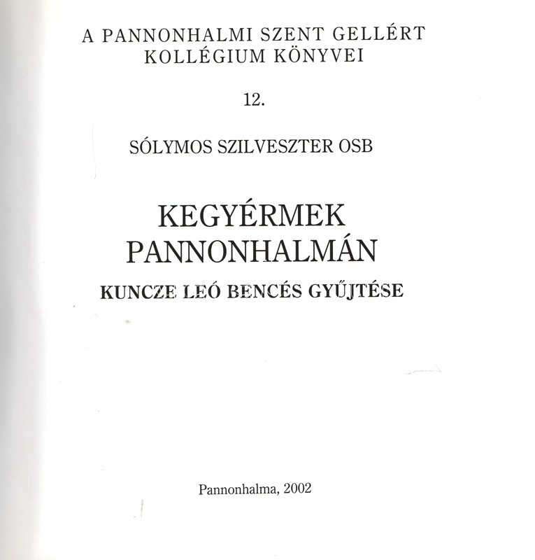Sólymos Szilveszter: Kegyérmek Pannonhalmán. Kuncze Leó bencés gyűjtése.