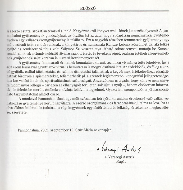 Szövegközti felvételekkel gazdagon illusztrált numizmatikai albumunk a Pannonhalmán gyűjtött és őrzött, egyházi és vallási témájú kegyérmék kollekcióját mutatja be és katalogizálja.