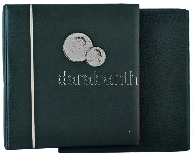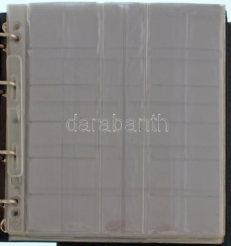 Leírás: "NUMIS " zöld műbőr négygyűrűs érmeberakó album tokkal + 9db berakólap, egyenként ~34,5mm-es fészekkel (180x) + 1db berakólap, egyenként 25mm-es fészekkel (30x) + 5db osztatlap berakólap soros tartóval, egyenként ~34,5mm-es fészekkel (100x), az egész album összesen 310db férőhellyel. Újszerű állapotban