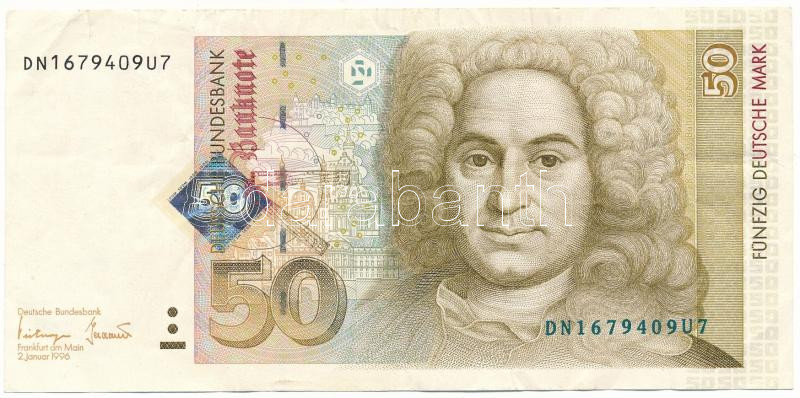 Germany 1996. 50 Ma... https://www.darabanth.com/hu/500-Gyorsarveres/500.0/Numizmatika/Numizmatikai-tetelek-rendkivul-alacsony-kikialtasi-aron~1500047/Nemetorszag-1996-50M-DN1679409U7-TF3Cbr-3E-Germany-1996-50-Mark-DN1679409U7-CF3Cbr-3E-Krau~II3334750