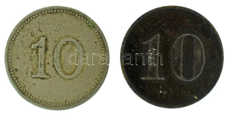 Leírás: DN(~1930-1940) "A Magyar Királyi Államvasutak alkalmazottai fogyasztási szövetkezete " 10 értékű bárcája (2xklf: Cu-Ni + bronz) T:XF,VF, patina