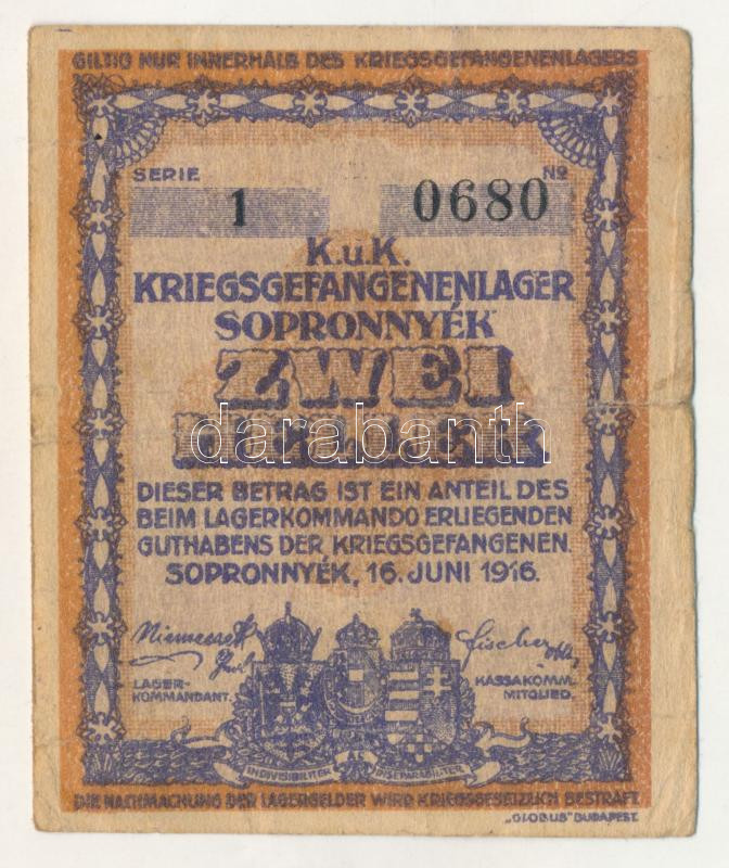 Sopronnyék / hadifogolytábor 1916. június 16. 2f arab sorozat- és sors... https://www.darabanth.com/hu/500-Gyorsarveres/500.0/Numizmatika/Papir-es-fem-szuksegpenzek~1500053/Sopronnyek-hadifogolytabor-1916-junius-16-2f-arab-sorozat-es-sorszammal-1-0680-TF3Cbr-3E~II3402575