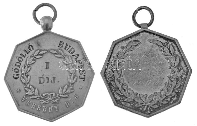 1884. "Gödöllő Budapest - Verseny díj - I. díj / Kedv Küzdelem Kitartás" jelzetlen Ag sportdíj (13,66g) + 1928. "Városközi teniszverseny Nagykőrös 1928 II. díj" jelzett Ag sportdíj emlékérem (13,86g/0.800) T:AU,XF patina