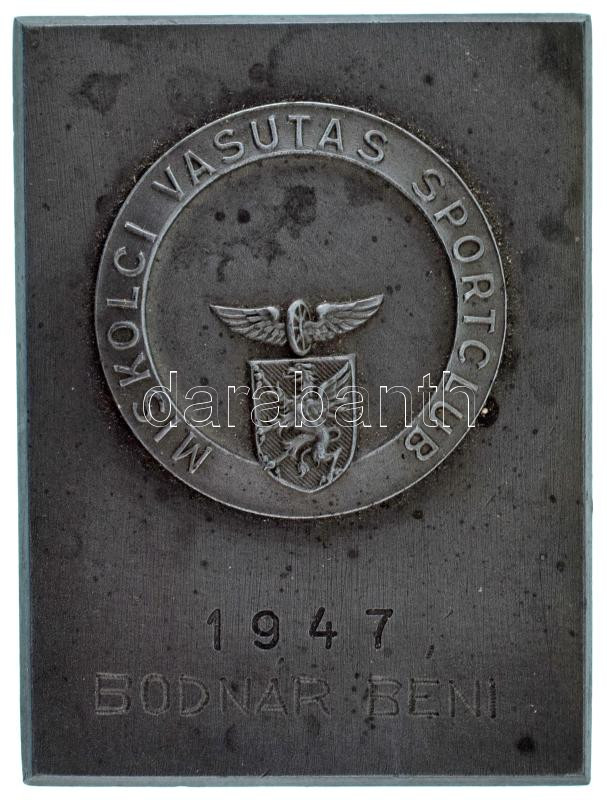 1947. "Miskolci Vasutas Sportclub (MVSC)" fém plakett "Bodnár Béni" nevére gravírozva. Bodnár Béni ebben az időszakban a Miskolci VSC elnöke volt (57x76mm) T:XF patina