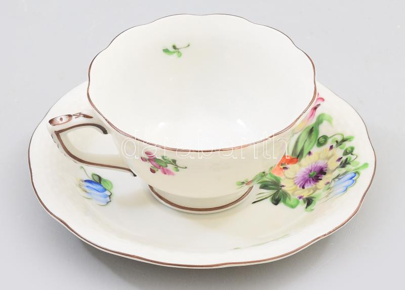 Leírás: Herendi virágmintás csésze alátéttel. Jelzett, hibátlan, d: 11 cm