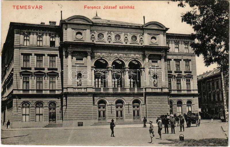 1911 Temesvár, Timisoara; Ferenc József színház, villamos, lovaskocsi ... https://www.darabanth.com/hu/502-Gyorsarveres/502.0/Kepeslapok/Erdely~3000002/1911-Temesvar-Timisoara-Ferenc-Jozsef-szinhaz-villamos-lovaskocsi-theatre-tram-horse-drawn~II3417391