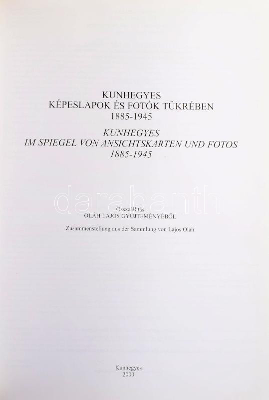S. Kiss R. Szabóné Somody M. (szerk.) Oláh L.: Kunhegyes képeslapok és fotók tükrében (1885-1945). Kunhegyes, 2000. 112p. Kiadói kartonált papírkötésben.