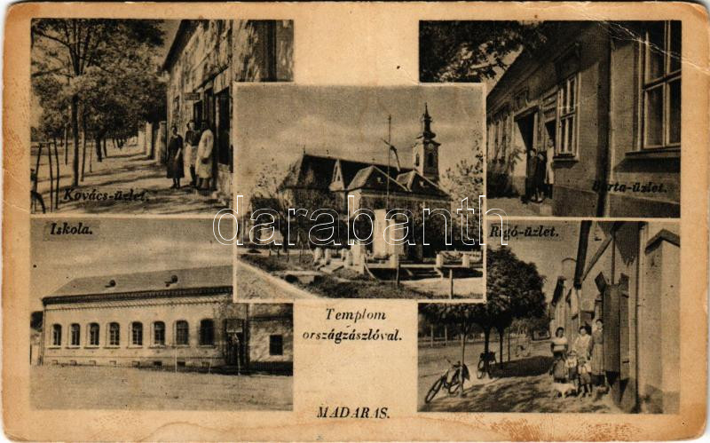 1950 Madaras, Kovács üzlet, Barta üzlet, templom Országzászlóval, isko... https://www.darabanth.com/hu/502-Gyorsarveres/502.0/Kepeslapok/Magyarorszag~3000001/1950-Madaras-Kovacs-uzlet-Barta-uzlet-templom-Orszagzaszloval-iskola-Rigo-uzlet-EB~II3414899