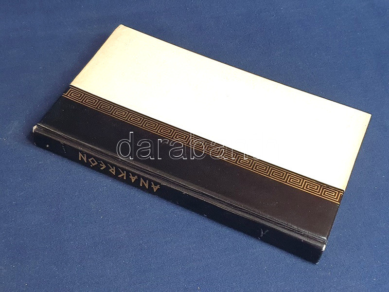 A Kr. e. VI. században élt Anakreón költészete már az antikvitásban is komoly rajongást váltott ki, majd a rokokó fedezte fel a poéta kevés témára, ám annál nagyobb formaművészetre kihegyezett líráját. Elsőként Zechenter Antal fordított a költőből (Prága, 1785), az első teljes magyar Anakreón-fordítás Ponori Thewrewk Emiltől való (Budapest, 1885), Devecseri Gábor fordítása pedig az első, kritikai kiadások alapján, tudományos igénnyel készült magyar edíció. Oldalszámozáson belül Szász Endre egész oldalas illusztrációival.