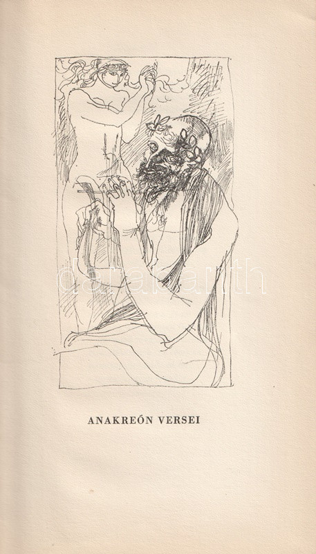 Anakreóni versek. Anakreóni dalok, töredékek. Fordította Devecseri Gábor. Illusztrálta Szász Endre. (Számozott.)