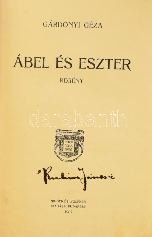 Leírás: Gárdonyi Ábel és Eszter. első kiadás. Bp., 1907. Singer. 244p. Kiadói kissé kopott vászonkötésben