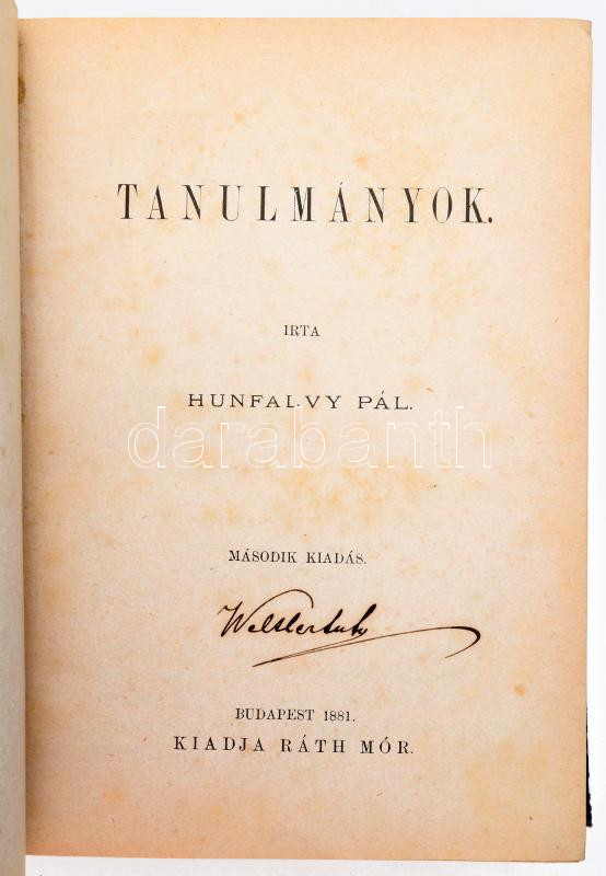 Hunfalvy Pál: Tanulmányok. Bp., 1881, Ráth Mór, IX+(3)+368+(2) p. Máso... https://www.darabanth.com/hu/502-Gyorsarveres/502.0/Konyvek/Konyvek-Egyeb-ritkasagok~2500020/Hunfalvy-Pal-Tanulmanyok-Bp-1881-Rath-Mor-IXplus3plus368plus2-p-Masodik-kiadas-Aranyozott~II3417548