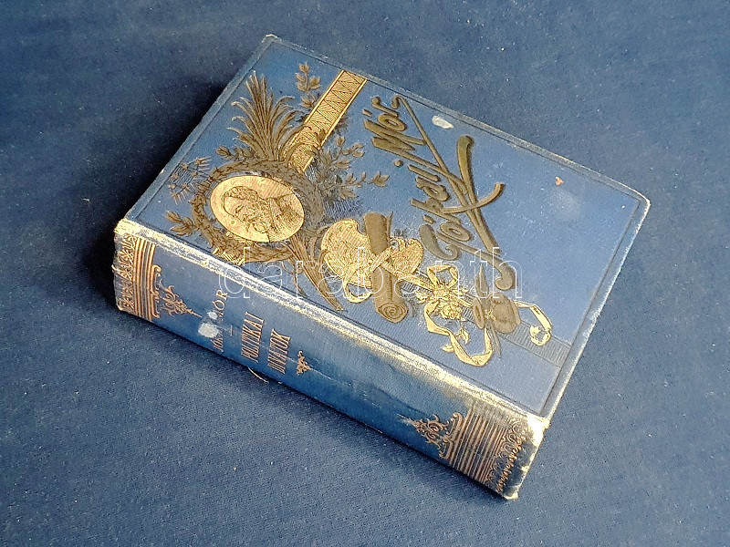 Aranyozott, festett, illusztrált, vaknyomásos, enyhén kopott, kissé sérült gerincű, későbbi kiadói egészvászon kötésben (Gottermayer Nándor), márványmintás festésű lapszélekkel. Jó példány.