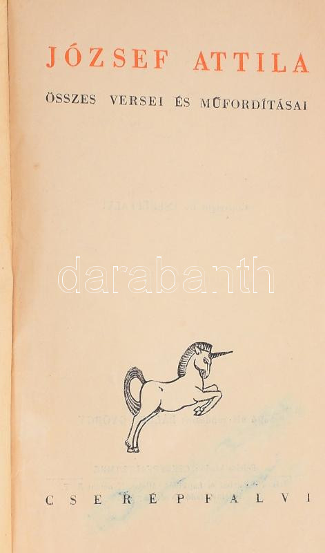 József Attila összes versei és műfordításai. Bp., é.n., Cserépfalvi. E... https://www.darabanth.com/hu/502-Gyorsarveres/502.0/Konyvek/Konyvek-Egyeb-ritkasagok~2500020/Jozsef-Attila-osszes-versei-es-muforditasai-Bp-en-Cserepfalvi-Egeszvaszon-kotes-gerinc~II3415221